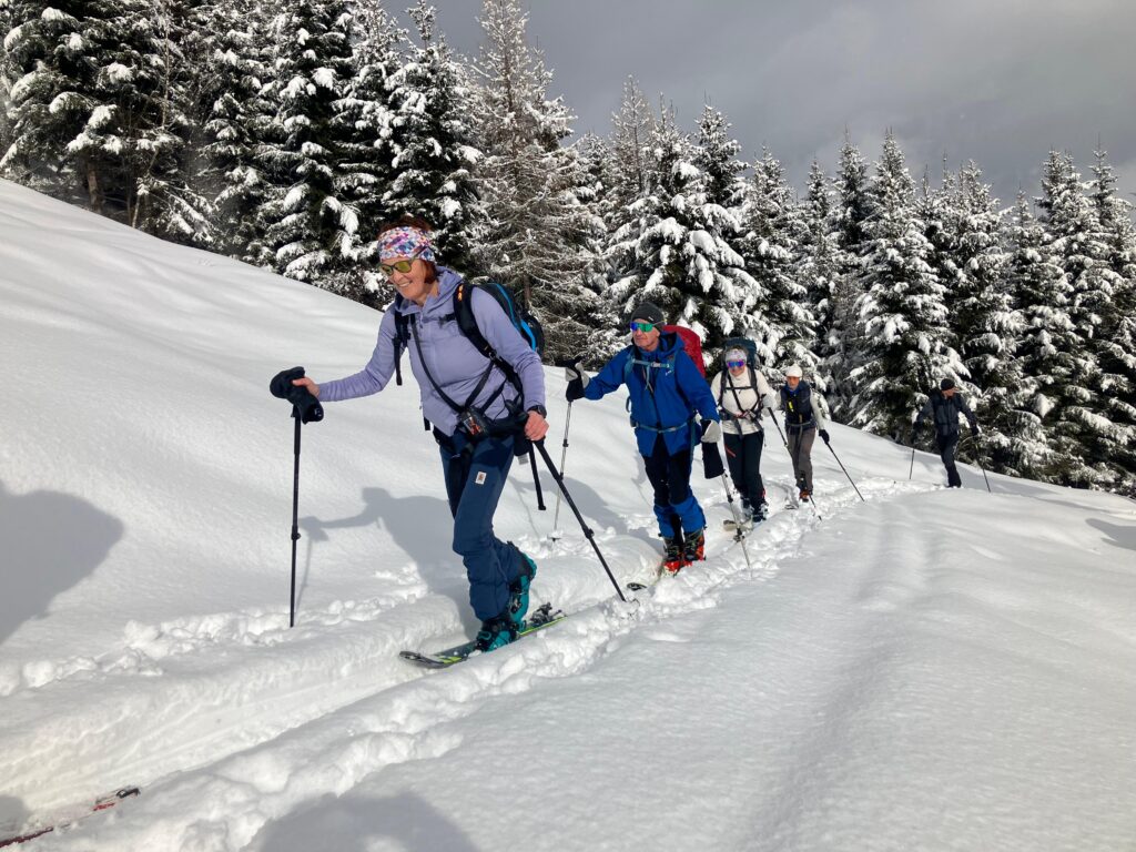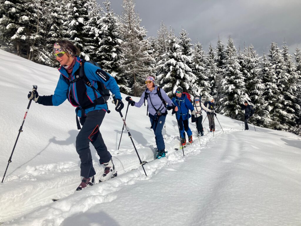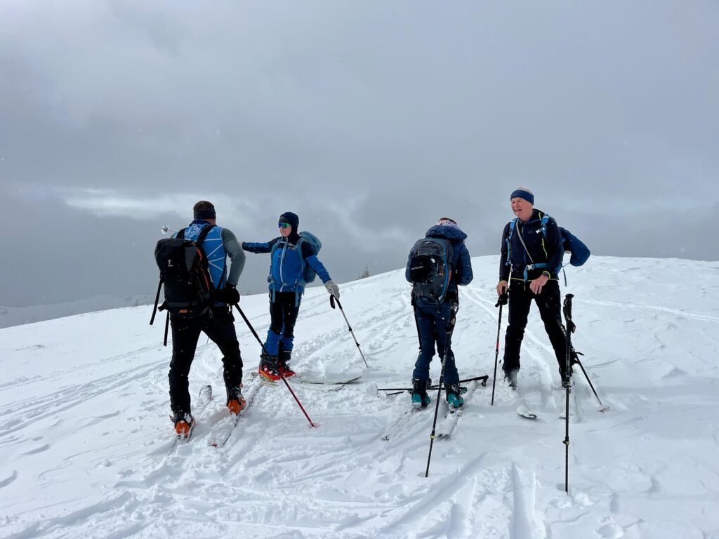Am zweiten Tag wählten wir den steilen Aufstieg im Schutzwald von Hubdorf auf die Laireiter Alm an der Bergstation der Panoramabahn. Eine ausgewiesene Schlechtwettertour mit hohem Potential zur Hüttengaudi. Retour geht`s über die Piste nach Großarl.