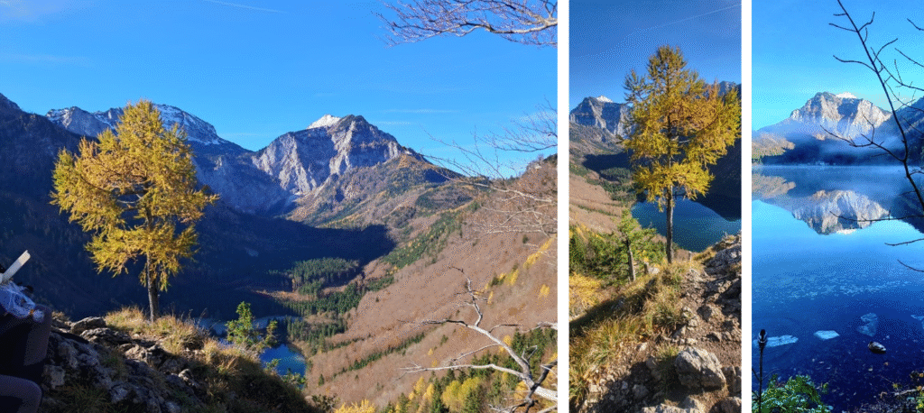 Abschied vom Salzkammergut. Marlies, Maria, Edith, Heidi, Erika, Elfi, Charly, Klaus und ich wollten nochmals das herbstliche Farbenspiel genießen. Perfektes Wetter und der ausklingende Herbst machten es möglich.