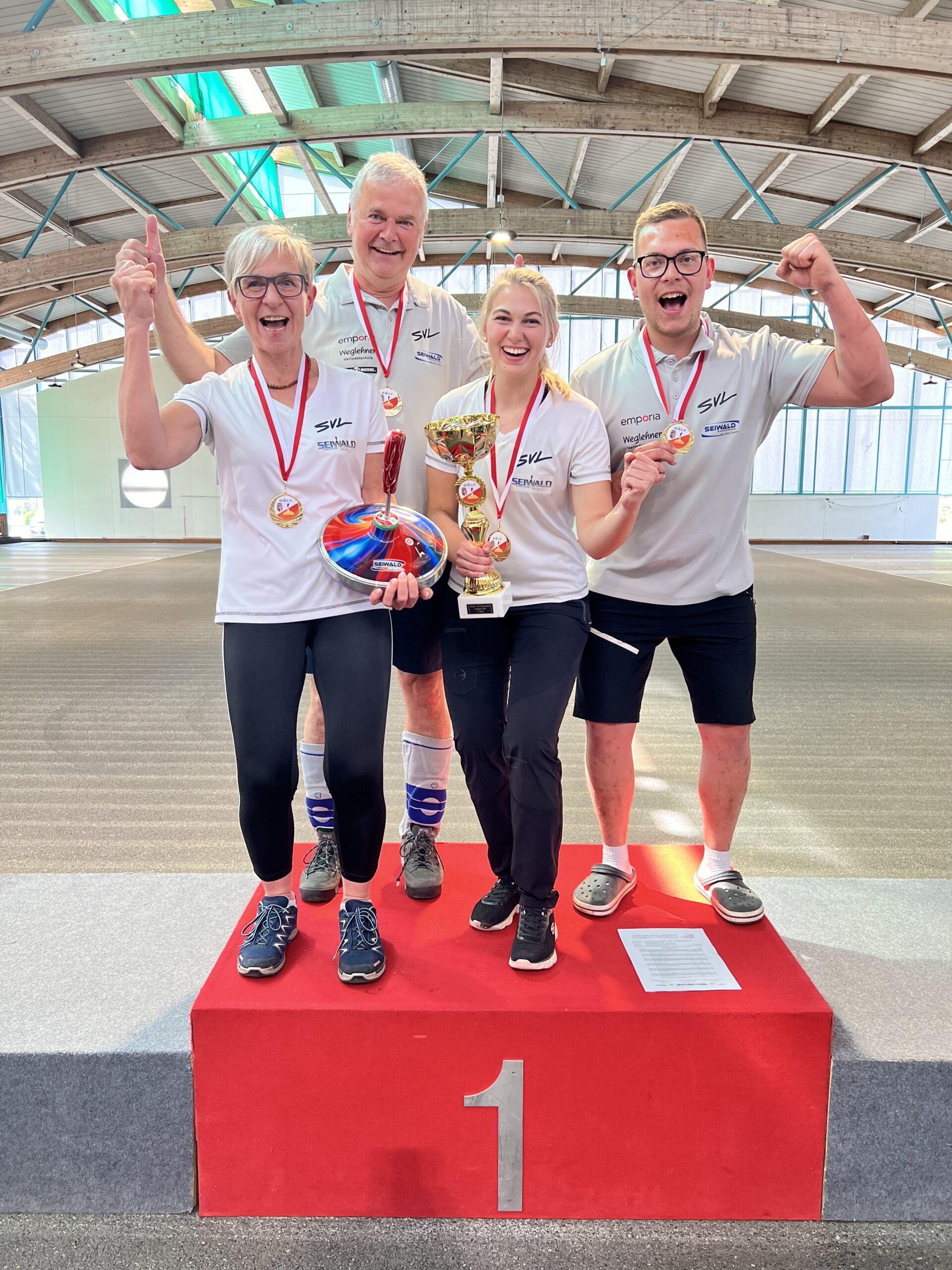 Die Gruppenphase überstand die Mannschaft souverän ohne Punkteverlust und mit einer Differenz von 40! Weiter ging es dann ins Finale und um den Aufstieg zur ÖM 2025 gegen ASK Stocksport St. Valentin. Melissa Mühl, Christine Kolb, Philipp Kolb und Johann Hager hielten den Druck stand und gewannen mit 5:3 im letzten Versuch. Eine großartige Mannschaftsleistung wurde somit belohnt und die Freude über den Aufstieg in die höchste Österreichische Liga im Mixed-Bewerb ist riesig.