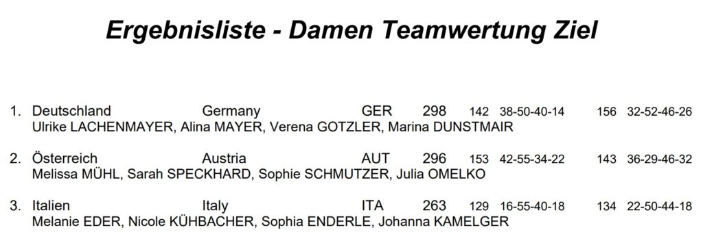 Die Europameisterschaften der Damen und Herren fanden von 05.03. – 09.03.2024 in Waldkraiburg in Deutschland statt. Unsere Melissa Mühl qualifizierte sich heuer für den Damen Ziel Teamwettbewerb. Bei diesem Bewerb gingen Mannschaften aus Deutschland, Italien, Schweiz, Slowenien Tschechien, Finnland, Brasilien und Guatemala an den Start.